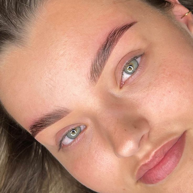 The healed result is usually soft, fuller, and lightly powdered. It should give the impression of density without appearing blocky or overly saturated. This makes it attractive for clients who want their brows to look gently enhanced rather than dramatically outlined.